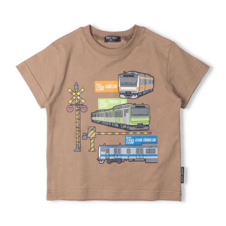 男の子が大好きな電車アイテム!人気のJR電車アイテム!関東地区を走るJRの在来線の山手線、総武線、京浜東北線のプリント入り!踏切のプリントに後ろ身頃の裾には踏切の刺繍が入ってるので、踏切好きにもオススメな半袖Tシャツ。【アイテム】トップス カジュアル お洒落 オシャレ かっこいい かわいい 可愛い 普段着 デイリーウェア お出かけ着 お外遊び着 子ども こども 男児 男の子 ボーイズ キッズ ベビーサイズ トドラーサイズ 幼稚園 保育園 小学校 通園 通学 小学生 2026年春夏物新作 丸高衣料 鉄道 子鉄 車両 電車 電鉄 トレイン イエロー 黄色 ブラウン 茶色 ハングリーハート コットン100% 綿100%