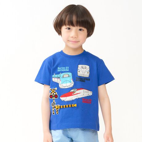 男の子が大好きな電車!毎シーズン大人気のJRコラボシリーズです!人気の新幹線のこまち、はやぶさ、のぞみのプリント入り。踏切の遮断機部分が動く楽しい仕掛け付き。踏切好きにもオススメな半袖Tシャツ。【アイテム】トップス カジュアル お洒落 オシャレ かっこいい かわいい 可愛い 普段着 デイリーウェア お出かけ着 お外遊び着 子ども こども 男児 男の子 ボーイズ キッズ ベビーサイズ トドラーサイズ 幼稚園 保育園 小学校 通園 通学 小学生 2026年春夏物新作 丸高衣料 鉄道 子鉄 車両 電車 電鉄 トレイン ホワイト 白色 ブルー 青色 ハングリーハート コットン100% 綿100%