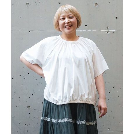 衿ぐりにギャザーを入れ、裾にはゴムを施すことで、自然と丸みのあるふんわりシルエットに!