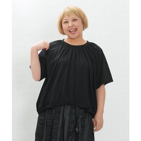 衿ぐりにギャザーを入れ、裾にはゴムを施すことで、自然と丸みのあるふんわりシルエットに!