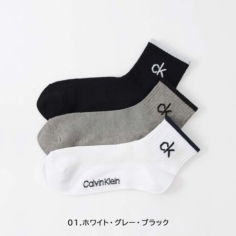 3足セットCalvin Klein 抗菌防臭 甲メッシュ ワンポイント ショート丈 ソックス