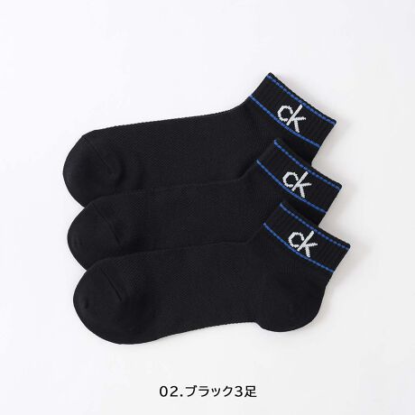 3足セットCalvin Klein 抗菌防臭 甲&足底メッシュ ワンポイント スニーカー丈 ソックス