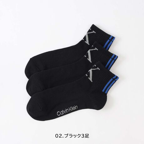 3足セットCalvin Klein 抗菌防臭 フロントロゴ ショート丈 ソックス