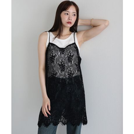 華やかで立体感のある総レースが目を惹くキャミソールトップス。