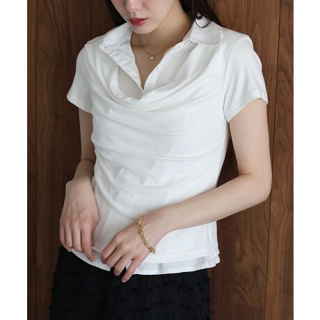 1枚で魅せる洗練レイヤード。ドレープネック×シャツのドッキングトップス