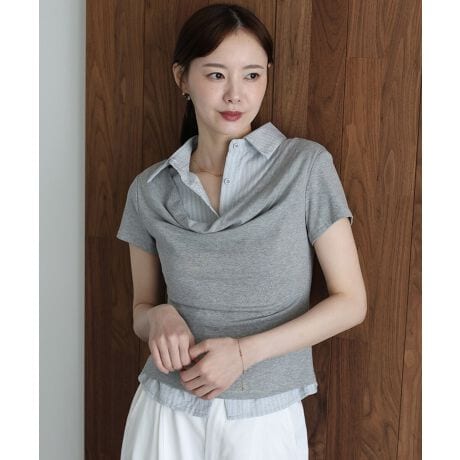 1枚で魅せる洗練レイヤード。ドレープネック×シャツのドッキングトップス
