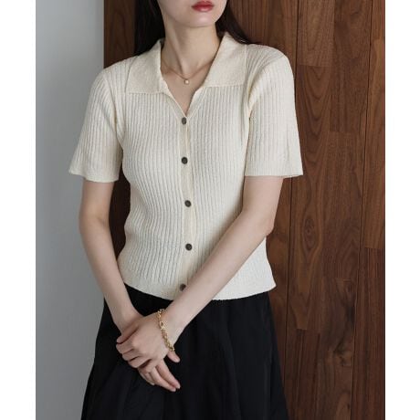 ボタンの留め方次第で、裾をスリットのように広げたり、カーディガンやプルオーバーにしたりと自分らしいアレンジが可能。