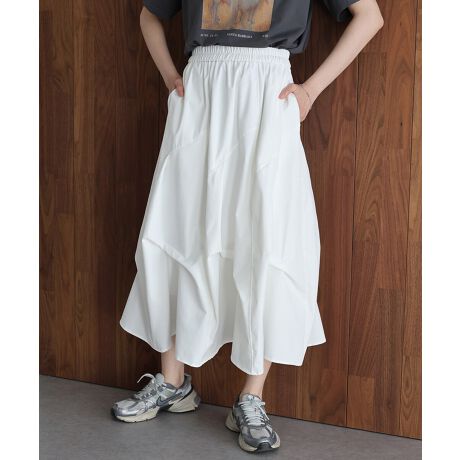 イレギュラーに入ったランダムタックが目を引くフレアスカート。