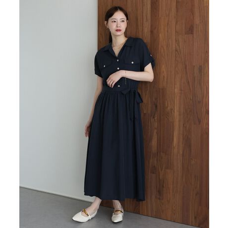 スキッパーネックシャツワンピース