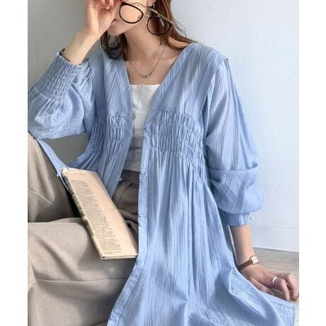 ワッシャーシアーの柔らかな落ち感が女性らしく、