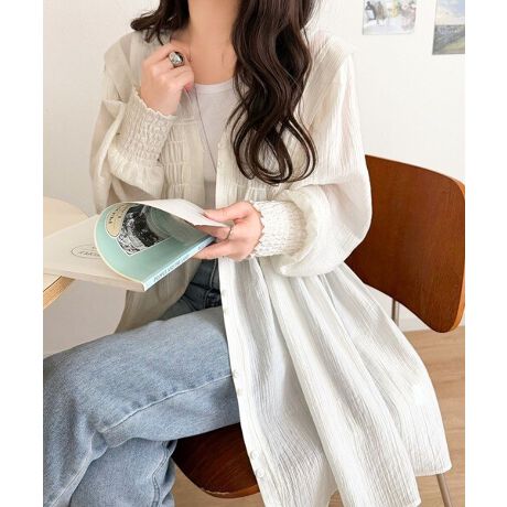 ワッシャーシアーの柔らかな落ち感が女性らしく、