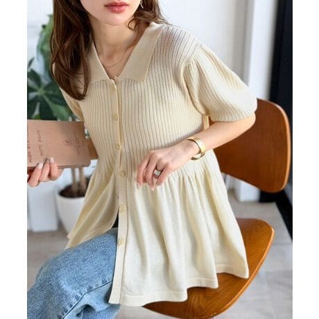 ポロ襟デザインが上品な雰囲気を演出する、きれいめペプラムトップス。
