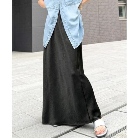 クラッシュサテン素材のナロースカート。