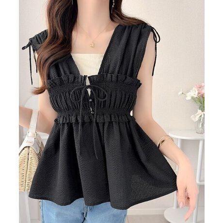【mily bilet】甘く揺れて、ときめき重なる♪ノースリーブリボンギャザーベストブラウス