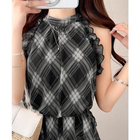 フリルが施された肩ラインが女性らしさを引き立て、