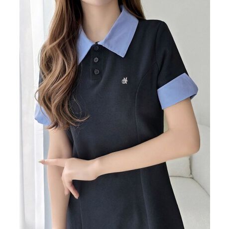 配色襟とカフスが目を引く、大人可愛いポロワンピース。
