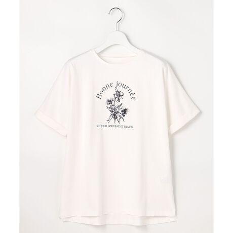 モノトーンフラワー柄が映える、上品ロゴTシャツ