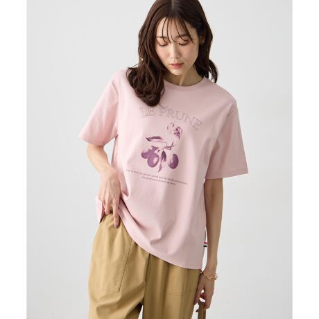 [型番:521163]こなれ感漂うヴィンテージ風フルーツTヴィンテージタッチのフルーツプリントが印象的な、トレンド感のある一枚。カラーごとに異なるモチーフで、それぞれ違った雰囲気を楽しめるデザインです。コンパクトなボトムやすっきりしたシルエットと合わせると、トップスの存在感が引き立ちます。