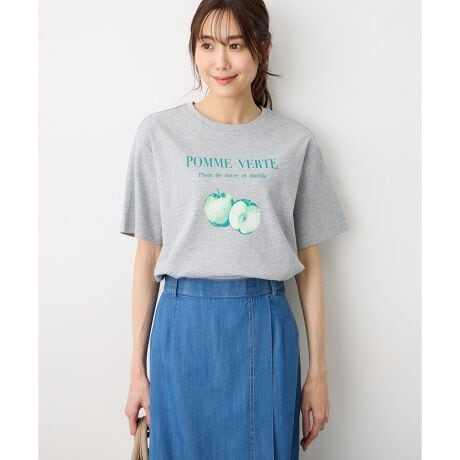 [型番:521163]こなれ感漂うヴィンテージ風フルーツTヴィンテージタッチのフルーツプリントが印象的な、トレンド感のある一枚。カラーごとに異なるモチーフで、それぞれ違った雰囲気を楽しめるデザインです。コンパクトなボトムやすっきりしたシルエットと合わせると、トップスの存在感が引き立ちます。