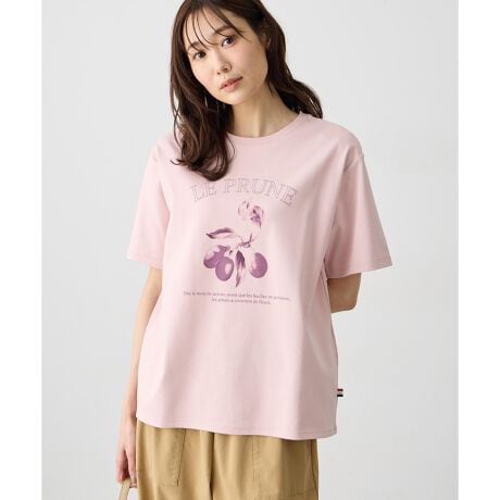 [型番:521163]こなれ感漂うヴィンテージ風フルーツTヴィンテージタッチのフルーツプリントが印象的な、トレンド感のある一枚。カラーごとに異なるモチーフで、それぞれ違った雰囲気を楽しめるデザインです。コンパクトなボトムやすっきりしたシルエットと合わせると、トップスの存在感が引き立ちます。