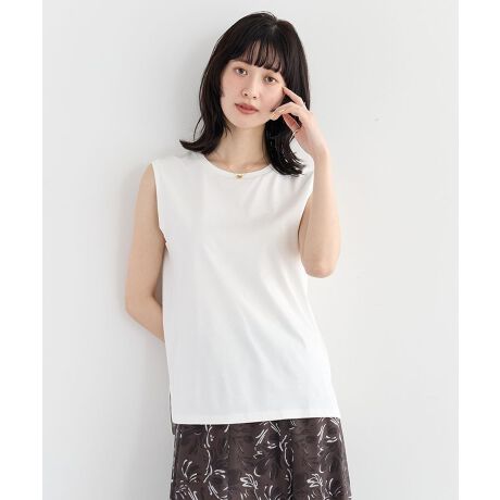 やわらかなコットンスムース素材を使用した、上品な印象のノースリーブカットソー。