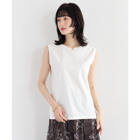 やわらかなコットンスムース素材を使用した、上品な印象のノースリーブカットソー。