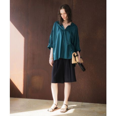 程よいミドル丈で脚のラインを自然にカバーしつつ、軽やかな抜け感をプラス。大人も着やすいデザインです。