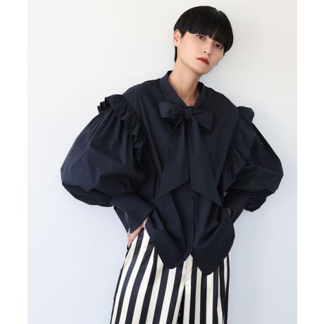ボウタイリボンがアクセントの2WAYデザインドロップショルダーブラウス。