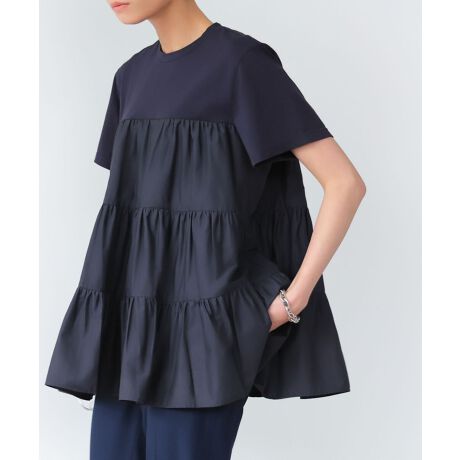 切り替え部分に贅沢にギャザーを入れ、トレンドのティアードディテールを取り入れた着映えするプルオーバー。
