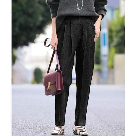 カジュアルになりすぎないようにフロントに2本タックを施し、テーパードシルエットに。