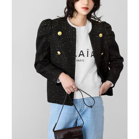 肩のパフデザインがレディライクなツイードジャケットです。