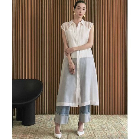 【2026SS】シアーノースリーブロングシャツワンピース《着用動画あり》