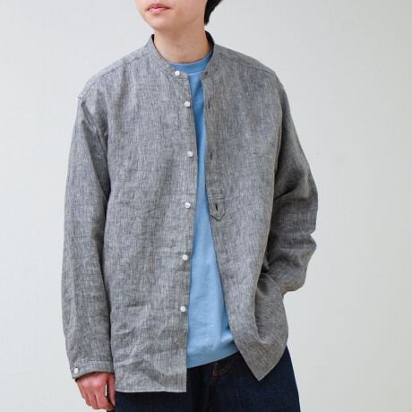 リネン100%バンドカラーシャツ