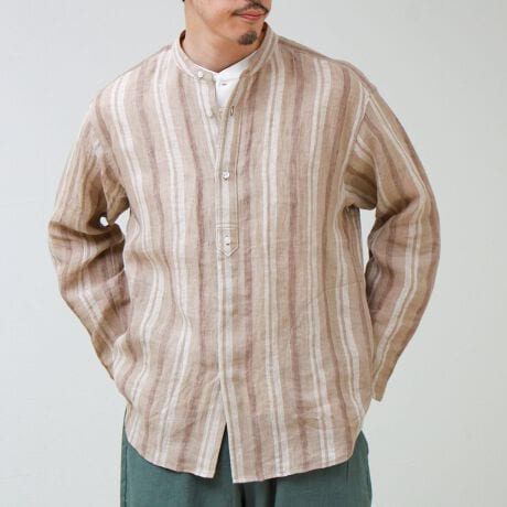 リネン100%バンドカラーシャツ