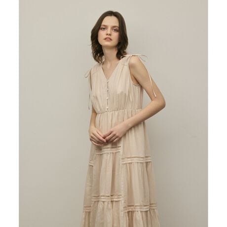さらっと纏うだけで品よく着映える大人のサマードレス。上品な艶感が綺麗で柔らかなコットンシルクローン生地を使用。空気を纏ったような軽い生地感やふんわりとしたリラクシーなシルエットが体に張り付かず開放感があり、着心地も快適です。ウエスト位置高めに設定した切り替えでメリハリをプラスし、スタイルアップ効果も◎用尺をたっぷりとった贅沢な蹴回しや分量感、そして可憐なティアードラインが歩いた時に優美に揺れ動き、装いを華やかに印象付けます。首元はスマートなVネックにしすっきりさせる事で、甘さ控えめに仕上げた大人に似合う一枚。サンダルやかごバッグなど、夏らしい小物を合わせてシーズンスタイルをお楽しみください。