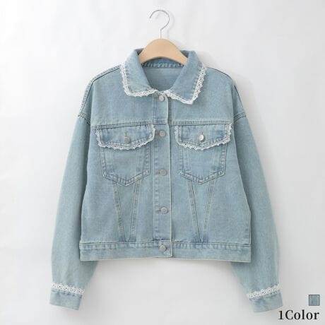 レースアクセントデニムジャケット