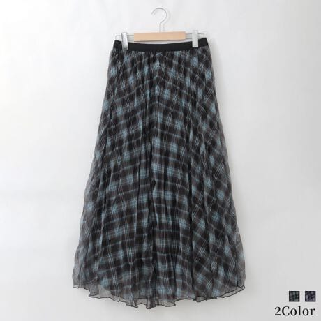 チェック柄チュールプリーツスカート