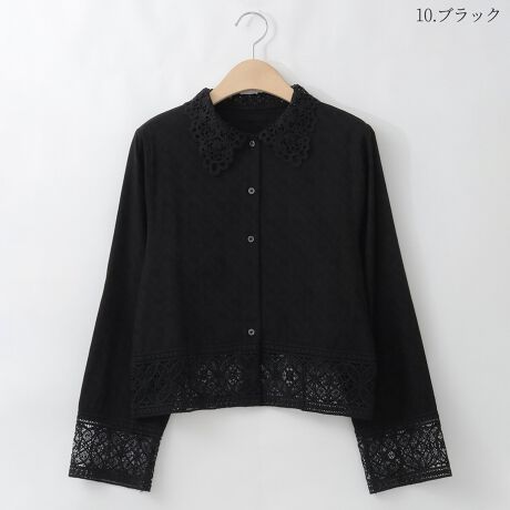 衿と袖口、裾にレース素材を組み合わせ、華やかで女性らしいスタイルを演出します。