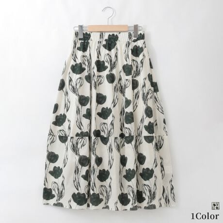 さっぱりとハリのあるテキスタイルで仕立てたデザインスカート
