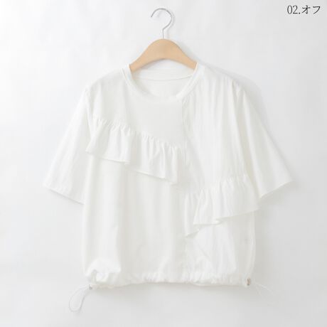 アシンメトリーなティアードフリルが目を惹くデザインブラウス。