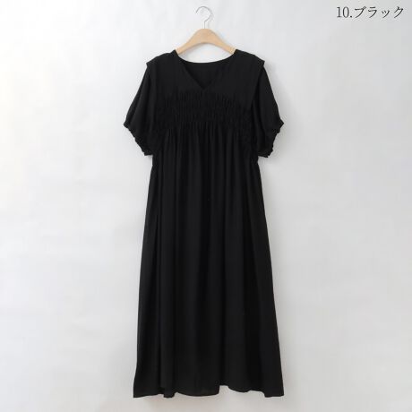 ギャザー&タックフレアVネックワンピース