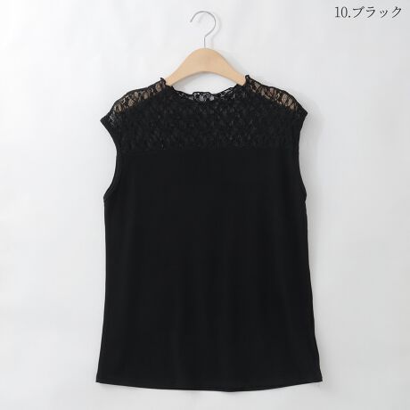 ヨーク部分にシアーレース素材をドッキングし、シンプルに合わせるだけで華やかに着映えます。