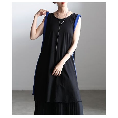 【チュニック】 レディース ノースリーブ サイドライン バイカラー 伸縮 切替デザイン Aライン