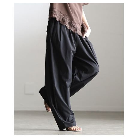 タック入りで立体感のあるカーブシルエットが魅力のパンツ。ほどよく丸みのあるラインでこなれた印象に仕上がります。ウエストゴム仕様で穿き心地もラク、デイリーに頼れる一本です☆