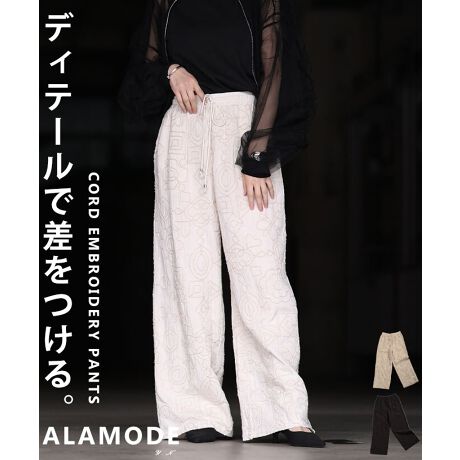 コード刺繍がさりげなく映えるイージーパンツ。立体感のあるデザインがシンプルなコーデにもアクセントをプラスします。ラクな穿き心地で、デイリーに取り入れやすい一本です☆