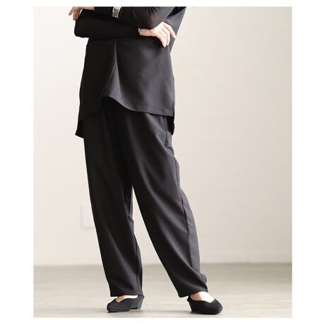【パンツ】 ワイド タック カーブ バレル ロング ウエストゴム ポケット テーパード ブラック 黒