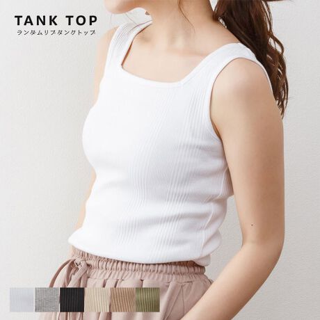 <div >ランダムリブスクエア タンクトップ</div><br><div ><div >着回し抜群、スタイリングの主役にもなるタンク。</div><div >開きすぎないスクエアネックデザインで露出を抑え着こなせます。</div><div ><br></div><div >一枚でももちろん重ね着のインナーとしても活躍するデイリートップスは</div><div >大人女子には必須のアイテムです。</div><div ><br></div><div >扱いやすく落ち着いたカラー展開でよりデイリーに取り入れやすいです!!</div><div >柔らかく、肌触りの良いコットン生地で着心地抜群の1枚です。</div><div ><br></div></div><div ><b>カラー展開</b></div>ホワイト / ブラック / 杢グレー / モカ / ベージュ / カーキ<br><br><b >サイズ展開</b><br>M / L<div ><br><b>サイズ</b></div><div ><div ><div ><div >M / 着丈:60cm、肩幅:30cm、身幅:34cm、裾幅:34cm、袖ぐり:18.5cm</div><div >L / 着丈:62cm、肩幅:31cm、身幅:37cm、裾幅:37cm、袖ぐり:19.5cm</div></div><div ><br></div></div><b >裏地 / 透け感 / 伸縮性</b><br><div ><div ><div ><div >なし / あり / なし</div><div ><br></div></div></div></div><div ><b>素材</b></div><div ><div>コットン100% / 杢グレーのみ コットン95% , レーヨン5%</div><div><br></div></div><div ><b>原産国</b></div><div >バングラデシュ</div><div ><br></div><div ><b>LARU / ラルー</b><br>「ベーシックなデザインにトレンドを取り入れリーズナブルな価格で提供する」がコンセプト。