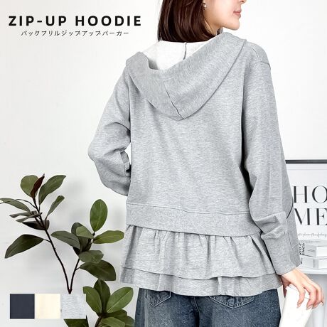 <div >ミニ裏毛 バックフリル ジップアップパーカー</div><br></div><div ><div >バックスタイルのフリルがフェミニンな可愛らしさを演出するジップアップパーカーです。</div><div >ヒップも隠れるデザインで、体型カバー効果も抜群!</div><div >程よい厚みで春秋の羽織として、夏の冷房対策にも活躍します。</div><div ><br></div></div><div ><b>カラー展開</b></div>ブラック / 杢グレー / ライトベージュ<br><br><b >サイズ展開</b><br>ML<div ></div><div ><div >M-L / 着丈:65cm、肩幅:40cm、身幅:52cm、裾幅:52cm、袖ぐり:23cm、袖丈:60cm、袖幅:22cm、袖口幅:9.5cm<br><div ><br></div></div><b >裏地 / 透け感 / 伸縮性</b><br><div ><div><div>なし / なし / ややあり</div></div><div><br></div></div><div ><b>素材</b></div><div ><div>コットン100% 別布:コットン95% , ポリウレタン5% / 杢グレーのみ コットン90% , レーヨン10% 別布:コットン85% , レーヨン10%/ポリウレタン5%</div><div><br></div></div><div ><b>原産国</b></div><div >バングラデシュ</div><div ><br></div><div ><b>LARU / ラルー</b><br>「ベーシックなデザインにトレンドを取り入れリーズナブルな価格で提供する」がコンセプト。
