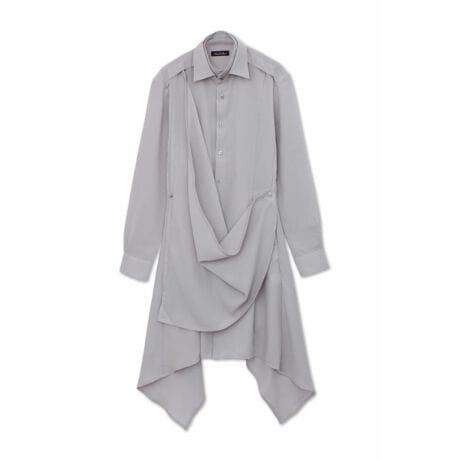 ウィングカラーに重ねたレギュラーカラーは脱着式仕様となっており、