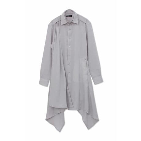 後ろ裾に広がりを持たせた、フレアラインが特徴のデザインロングシャツコートです。